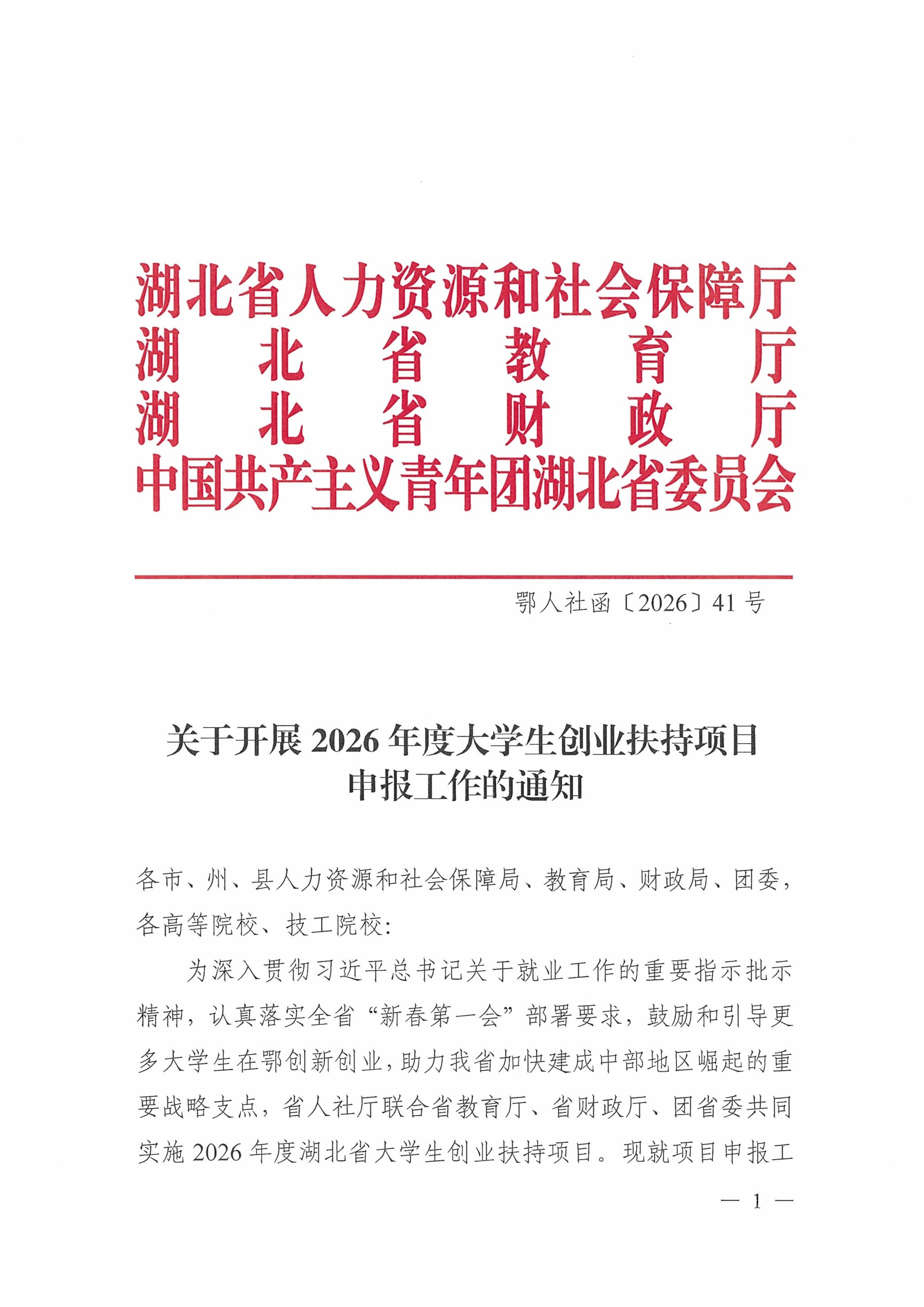 20260330 关于开展2026年度大学生创业扶持项目申报工作的通知.pdf