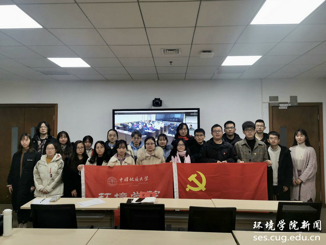 水文专业大学生党支部书记刘傲介绍党支部发展情况。他说,水文支部在环境学院党委的正确领导下,致力打造“双创”品牌,在支部党员思想学习、成长发展、科研能力、实践服务等方面实现引领作用:支部曾邀请华中科技大学先进学生党支部,来院介绍典型经验;与教师党支部共同参观中共五大会址,加强师生党建交流;组织支部成员进行咀里湖志愿清扫活动;成立党员帮扶小组,让优秀同志帮扶成绩薄弱同学;学院搬迁期间,组建义务搬迁工作队,帮助女同学搬运行李。最终,在支部成员的共同努力下,支部今年获评校“十佳党支部”。