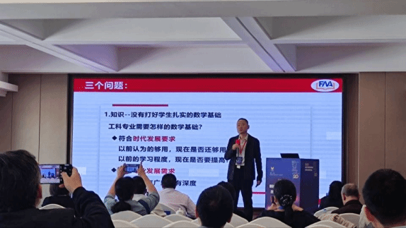 学院参会教师与来自全国各高校的数学教育专家和同行进行了广泛交流,围绕教学改革展开深入讨论,积极汲取各校在数学基础课程建设与改革方面的先进经验。本次会议设置多个分论坛,覆盖数学分析、高等代数、概率统计、交叉融合等多个领域,精准对接不同方向的教学研究需求。我院杨飞教授在交叉融合分论坛上作了题为《工科专业数学基础课程FMA教学模式探讨》的专题报告。他结合近年来的教学改革实践与研究探索,系统阐述了FMA教学模式的理念与实施路径,分享了我院在大学数学创新教育方面的成果,引发了与会专家的热烈反响与共鸣。
