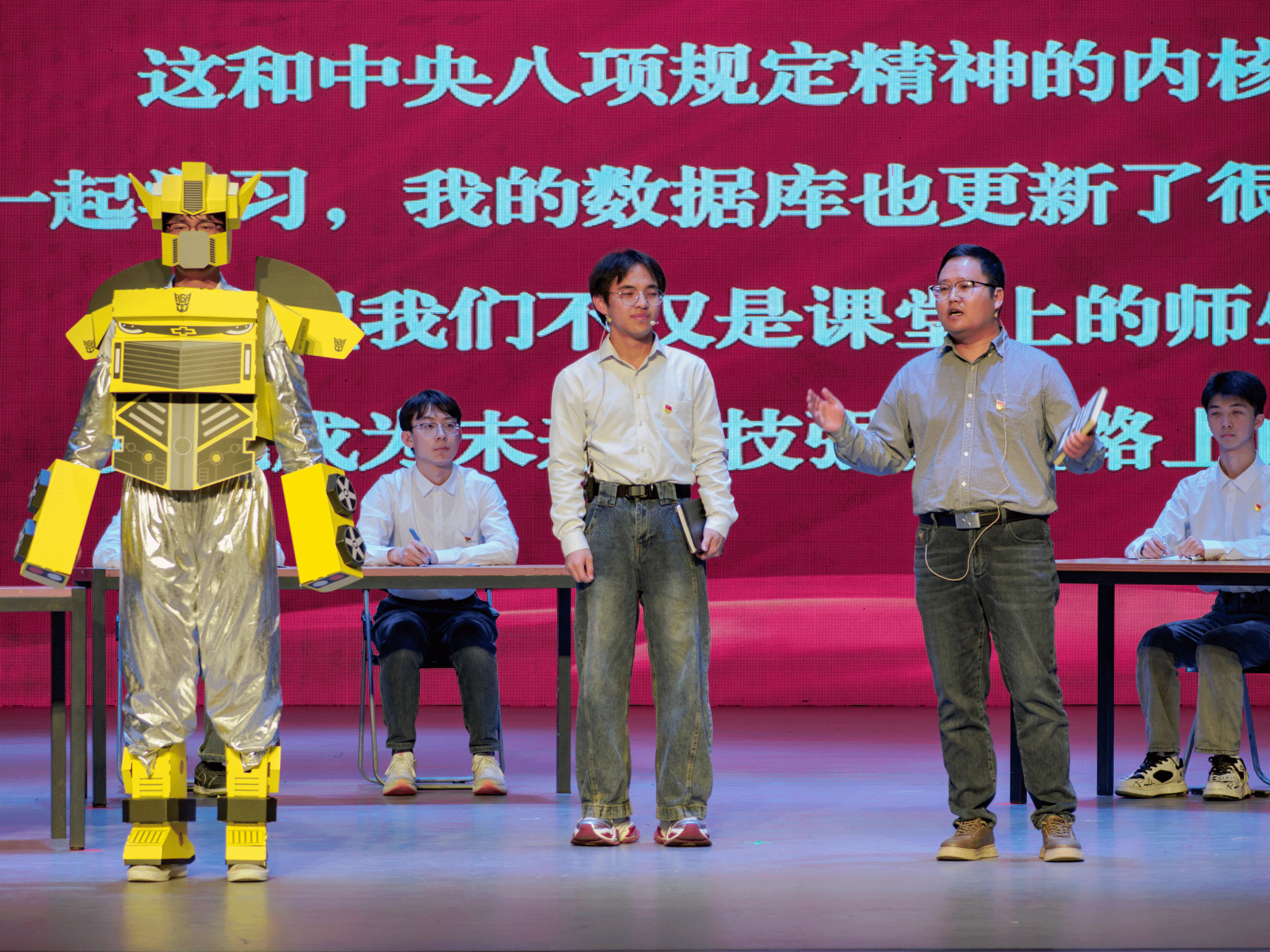 在支部成员学习生活情景展示环节,机械与电子信息学院机械专业第一本科生党支部《“小电鸡”的特别党课》以情景剧形式呈现,通过机器人“小电鸡”参与主题党日的趣味互动,贴近学生的学习生活实际,生动阐释了中央八项规定精神的内涵;数学与物理学院数学与应用数学党支部通过重温“两弹一星”精神、分享个人成长故事等方式,引导学生党员坚定理想信念,立下强国之志。未来技术学院展示了支部组织参观大国重器的一次特殊主题党日活动,讲述了支部成员前往广州海洋地质调查局、嘉兴南湖开展实习实践的学习经历。生环全重实验室研究生第二党支部通过情景朗诵加合唱的形式,以时空对话方式引导当代青年学习先辈革命精神,坚定理想信念。新闻传播学学生第一党支部聚焦新闻传播学子的专业思考,以情景剧形式再现中国共产党早期新闻工作者向警予同志的办报实践与革命事迹,展现“笔就是枪”的坚定信念。