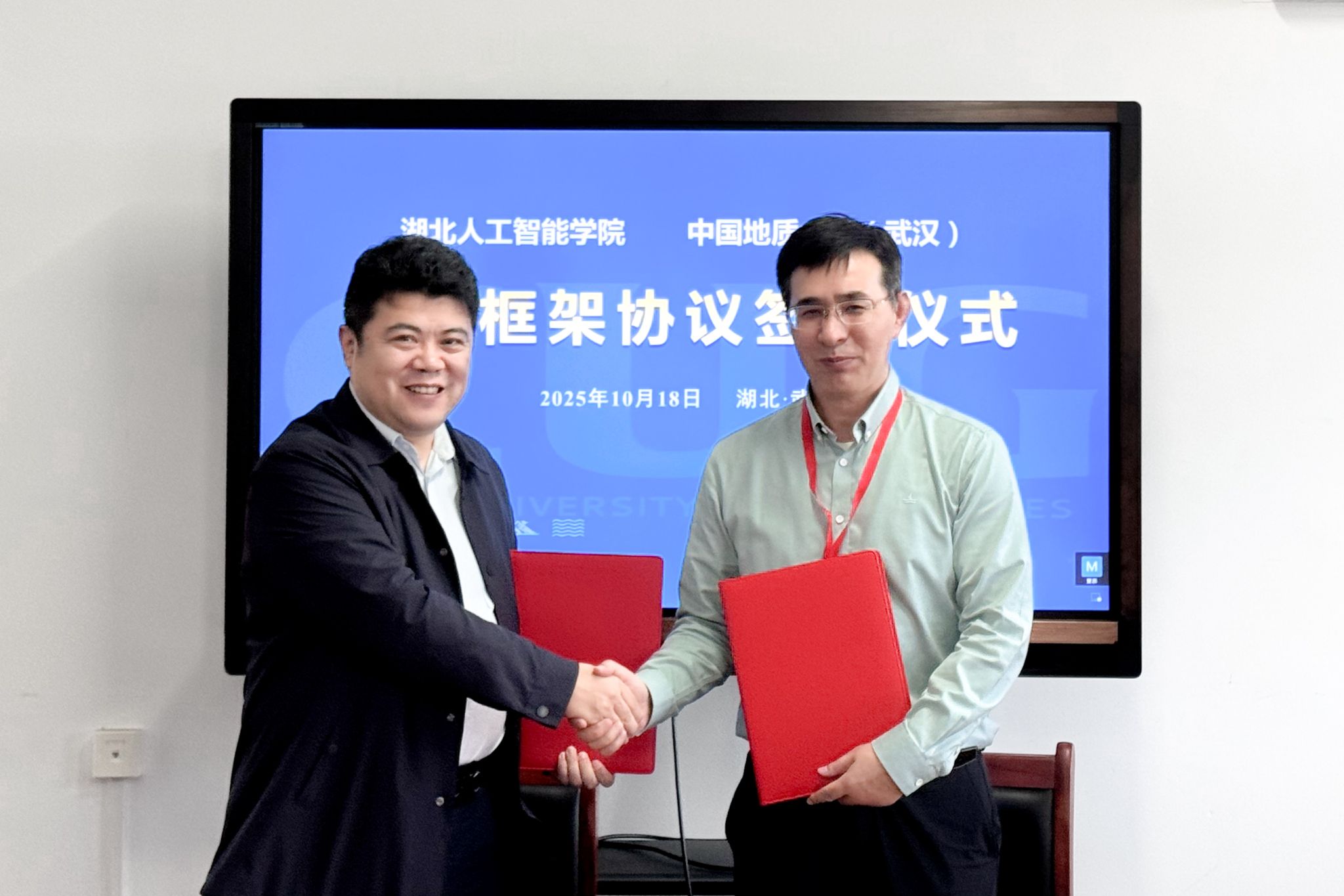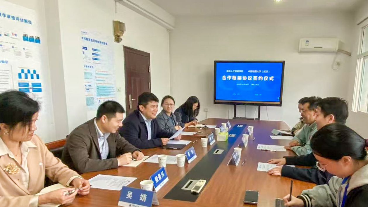 10月18日,我校与湖北人工智能学院签署合作框架协议。湖北人工智能学院院长马修军,院长助理韩冰,我校本科生院院长姜涛、副院长肖梦琼,质量管理与评价处副处长章帆以及双方单位相关负责人参加。