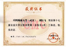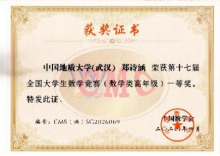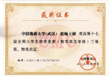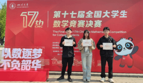 (通讯员:李志明 审核:郭艳凤 张基得))4月17日至19日,第十七届全国大学生数学竞赛决赛在成都举行,我校数学与物理学院数学与应用数学专业郑诗涵同学荣获数学类高年级组一等奖,赵杨玉彬同学荣获数学类高年级组三等奖,机械与电子信息学院电子信息工程专业刘恒飞同学荣获非数学A类三等奖。这是我校首次获得该赛事决赛一等奖,实现了新的突破。