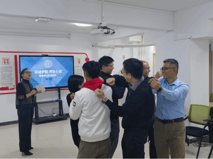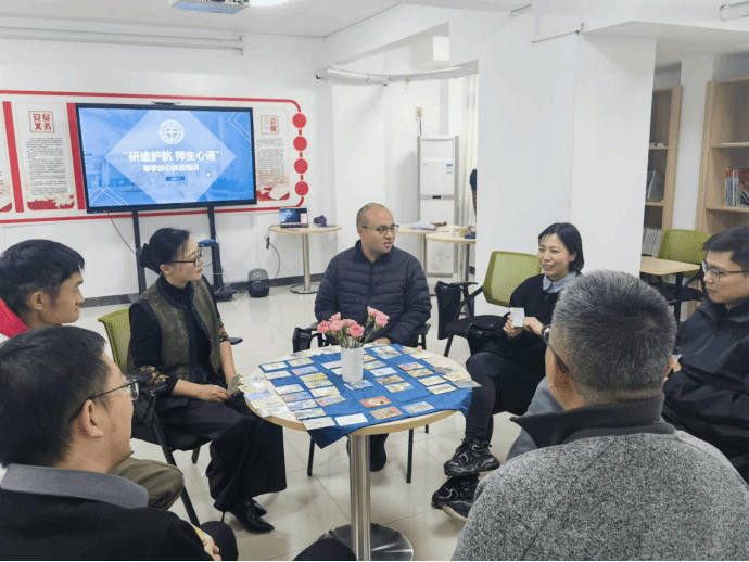 为深入贯彻落实高校思想政治工作会议精神,推动导学思政育人走深走实,构建和谐、共进、双向奔赴的导学关系,提升导师在谈心谈话中的专业能力与心理素养,2025年11月13日上午,学生心理健康教育中心与工程学院于西区一站式学生社区107联合举办“研途护航・师生心语”导师谈心谈话团体心理沙龙。本次活动由心理中心薛春艳教授主持,来自工程学院的七名教师积极参与,围绕“从以师为中心到以生为中心”的沟通理念展开深入交流与体验学习。