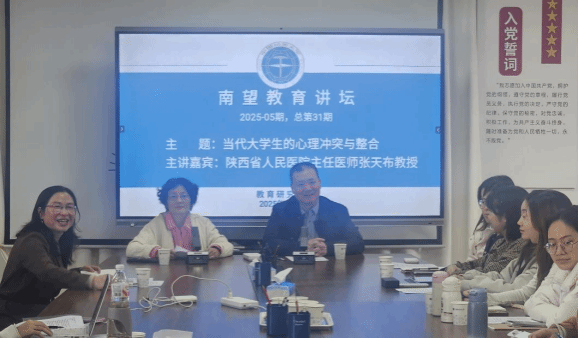 11月22日下午, “南望教育讲坛”2025年第5期在本科生院501成功举办。本次讲坛邀请陕西省人民医院主任医师张天布教授,以“当代大学生的心理冲突与整合”为主题进行专题讲座,学生心理健康教育中心专职教师、院系辅导员、教育研究院师生共40余人参与讲坛,讲坛由教育研究院副院长刘陈陵老师主持。