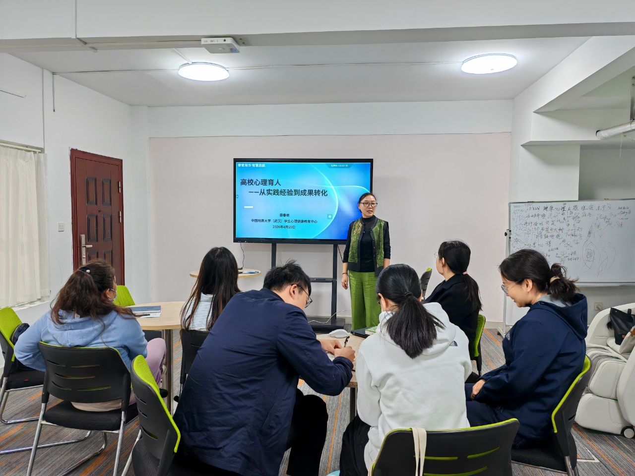2026年4月20日上午10:00,地心积极心理培育实践工作坊首次工作沙龙在南望山校区一站式学生社区106活动室温暖启幕。来自学校心理育人一线的老师们围坐相聚,在轻松治愈的氛围里,共探心理育人新路径,共话实践成果新转化,一场有温度、有共鸣的心理育人交流沙龙顺利举行。